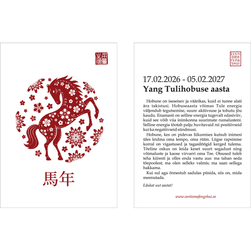 Hobuseaasta aktiveerija, mis paigutatakse ruumis, õues, autos jne nähtavale kohale – avaldades seeläbi austust hobuseaastale ja tõmmates ligi toetavat energiat.