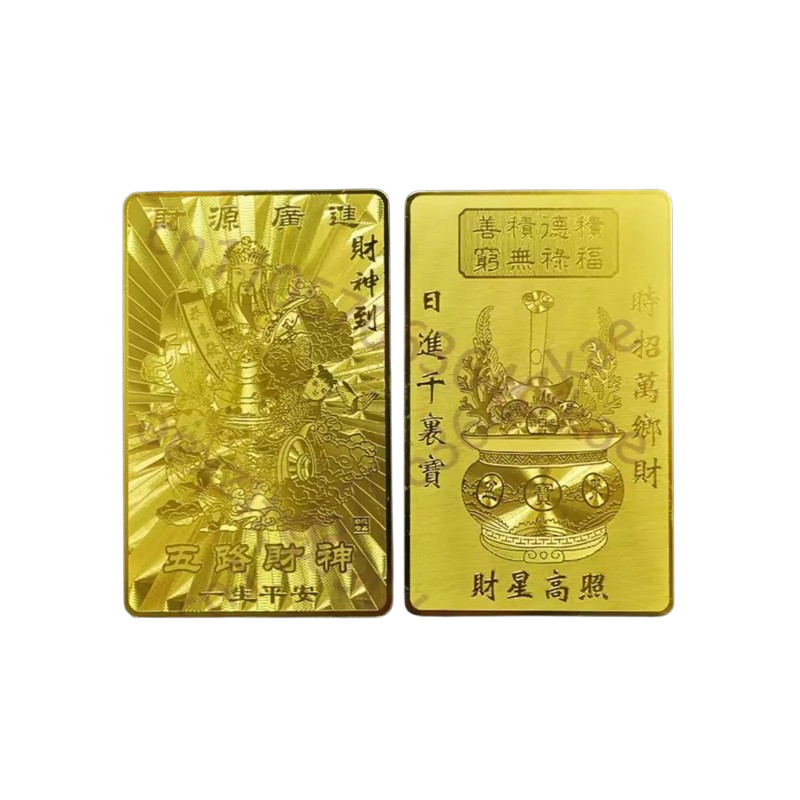Äriedu, külluse, rikkuse, heaolu aktiveerimise kaart. Kahepoolse kuldse kaardi mõõdud 5 cm x 8 cm.