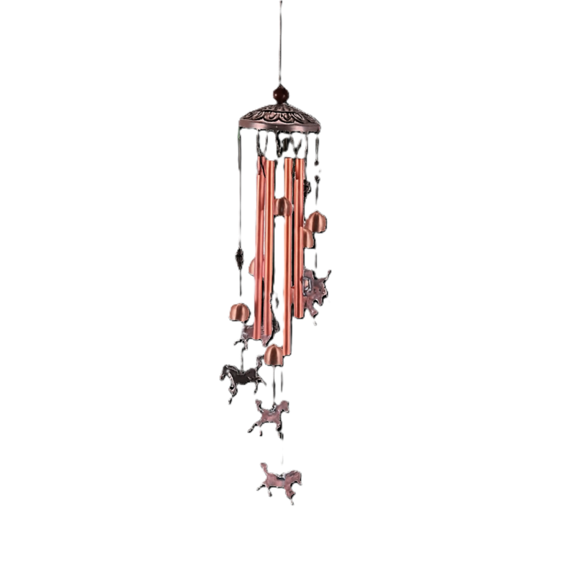Metalselt kõlava tooniga tuulekell tuppa, verandale, terrassile, aeda. Tuulekella kogupikkus on 81 cm ja laius 11 cm. Hobuste suurus 5 x 5 cm. Tuulekell on pronksise tooniga.