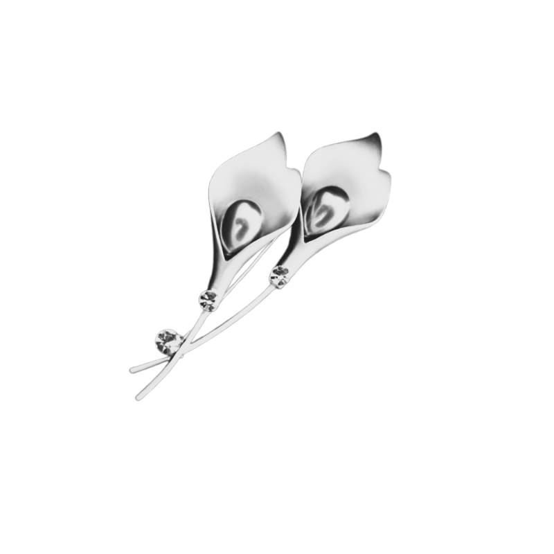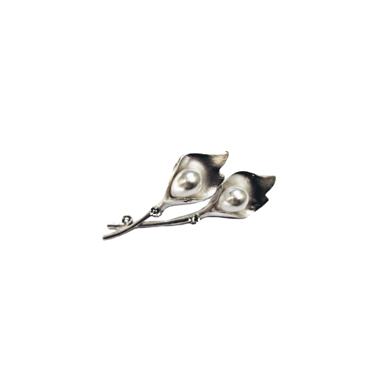 Imekaunis kalla õie kujuline rinnanõel (hõbeda tooni). Õisi kaunistavad 2 tehispärlit. Rinnanõela mõõdud 2 cm x 7 cm.