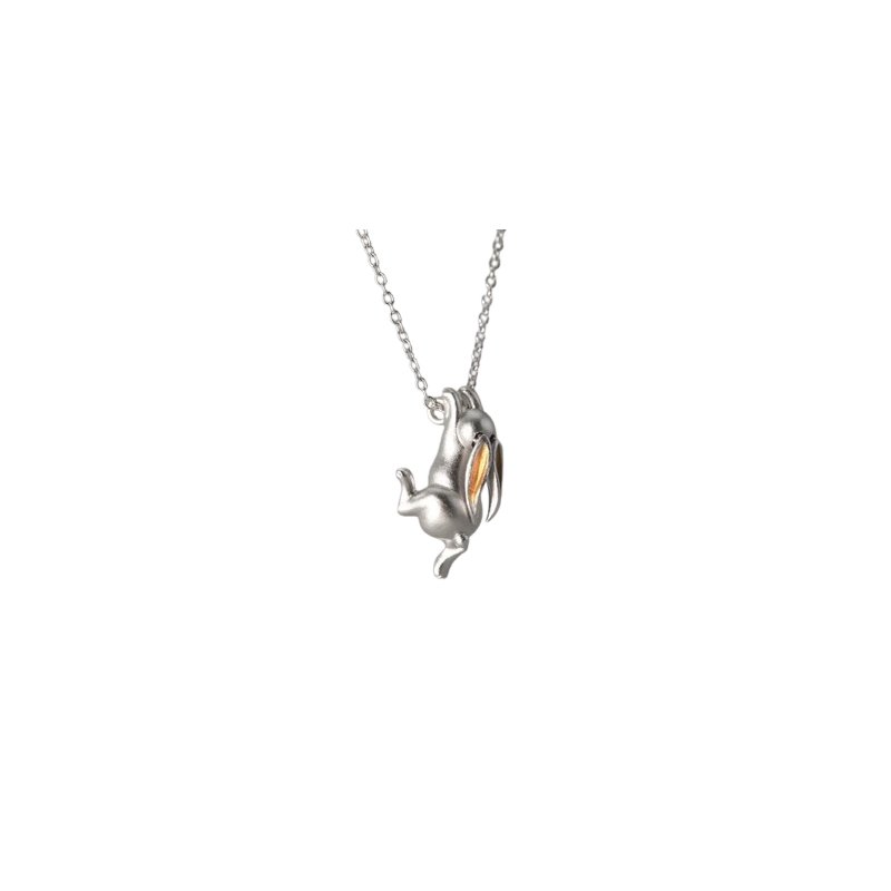 Hõbedast tooni kaelakee ja jänese ripats (jänese kõrvad on kaunistatud kuldse tooniga). Keti kogupikkus umbes 44 cm. Ripatsis on kujutatud jänest, kes hoiab ketist kinni. Ripatsi mõõdud 10mm x 18mm x 8 mm. Jänese kõrvad liiguvad.
