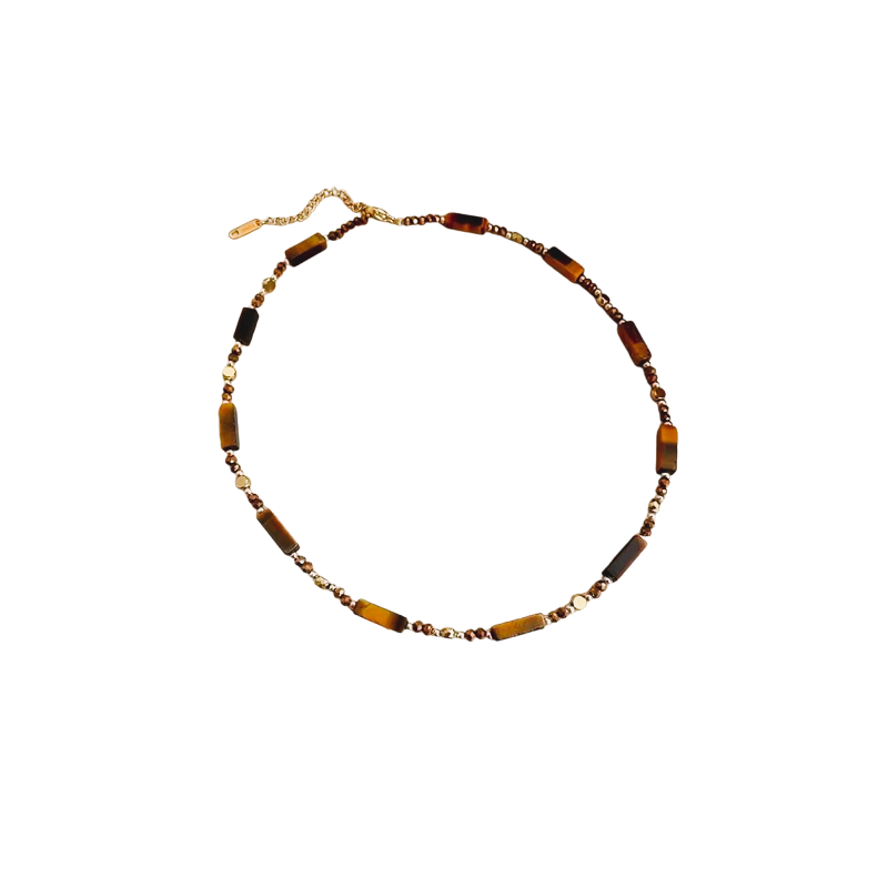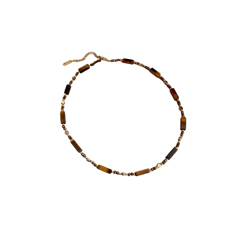 Tiigrisilma kividest kaelakee pikkusega 37-41 cm. Kandiliste kivide läbimõõt on 4mm x 12mm. Ketiosa on kuldset tooni.