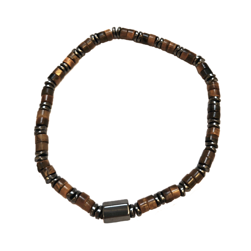 Käevõru hematiidist ja tiigrisilmast. NB! Hematiit on tulihobuse aasta tervisekivi. Käevõru randme ümbermõõdule 19 cm. Kivide suurus 4 mm x 2mm. Kaal 8,5 g.