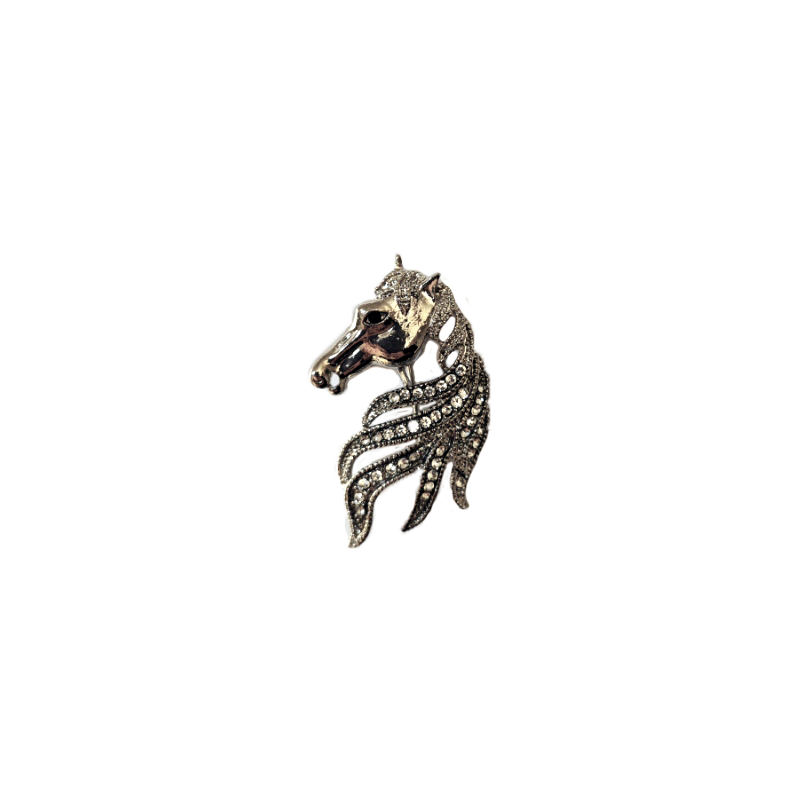 Elegantne hõbedane rinnanõel hobuse portreest - sobib nii naisele kui mehele. Rinnanõela mõõdud 2,5 cm x 4 cm.