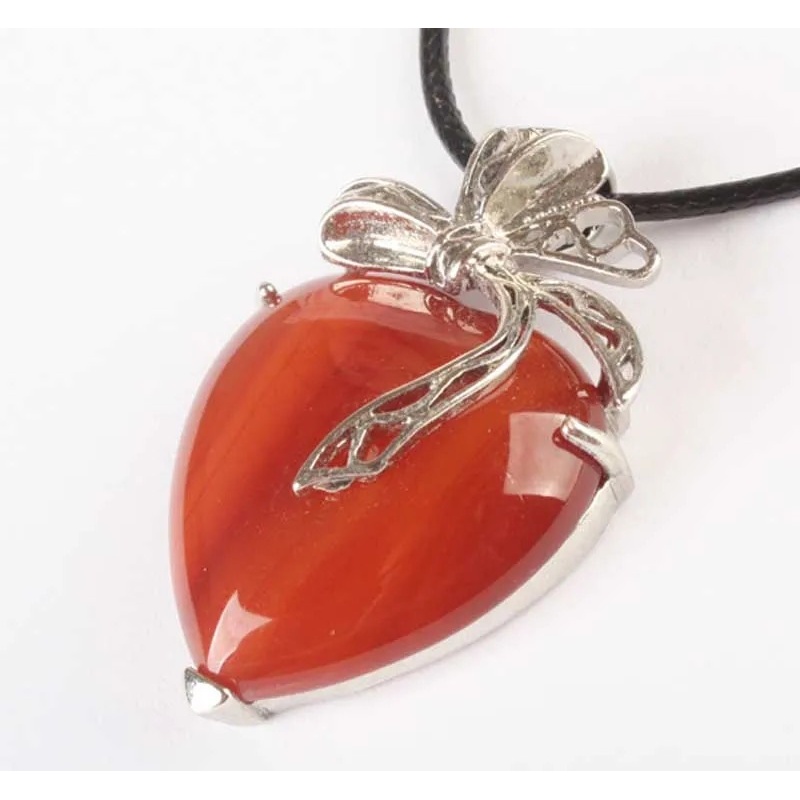 Südamekujuline lipsuga kaunistatud karneoolist ripats mõõtudega 32mm x 32mm ja kaaluga 15g. Süda on kaunistatud kelmika lipsuga.