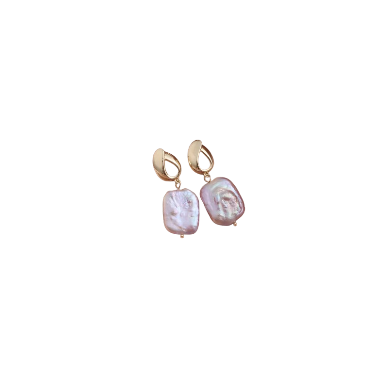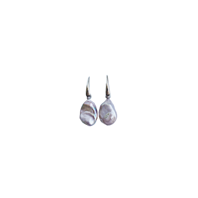 Käsitsi valmistatud barokse kujuga kõrvarõngad. Ehtes on kasutatud lillat magevee pärli mõõtudega 15x22 mm, ehte kogupikkus 42 mm. Kõrvarõngaste puhul on valida kas kuldse tooniga hõbedase tooniga kinnitusosa.